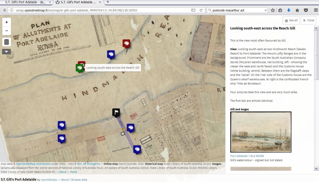 Gill painted (and repainted) Port Adelaide in the 1840s. This article is a detailed examination of the Port Adelaide pictures by Gill and some other contemporary artists. It sets Gill's artworks in place and time, presents these in an interactive map and resolves the question of the original artist for the "Port Adelaide" plate in George French Angas' "South Australia Illustrated"..
