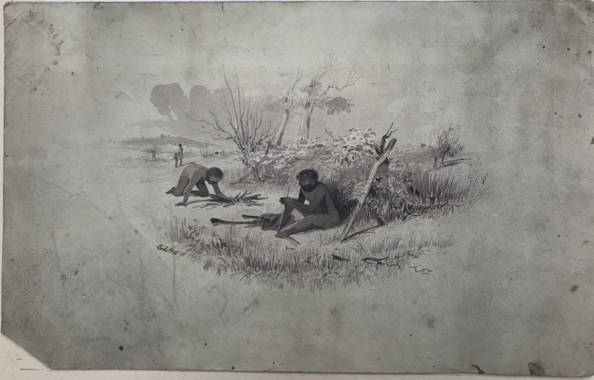 Aborigines making fire | Mitchell Library, State Library of New South Wales SSV/106