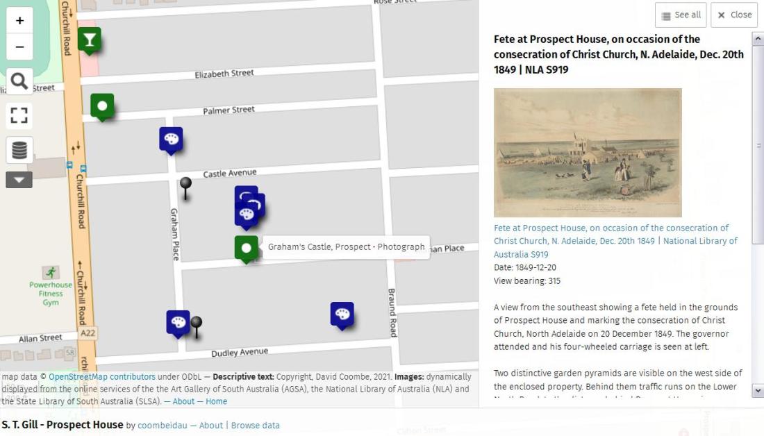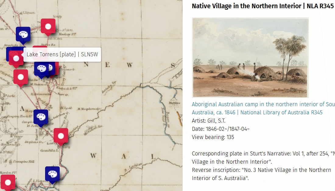 S.T. Gill's many paintings of the city of Adelaide are included in this online interactive map of 1840s Adelaide. Move around the
